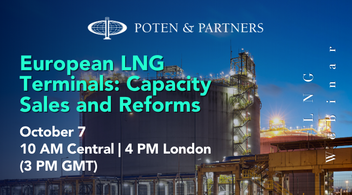 Stream now for a webinar featuring Poten’s Head of European LNG Business Intelligence Oleg Vukmanovic on October 7 as we explore shifting dynamics in European LNG terminal capacity and markets.